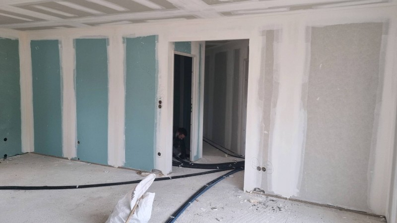 Notre équipe a installé le réseaux courant fort et faible afin de pouvoir poser l'équipement après le passage du LOT carrelage.